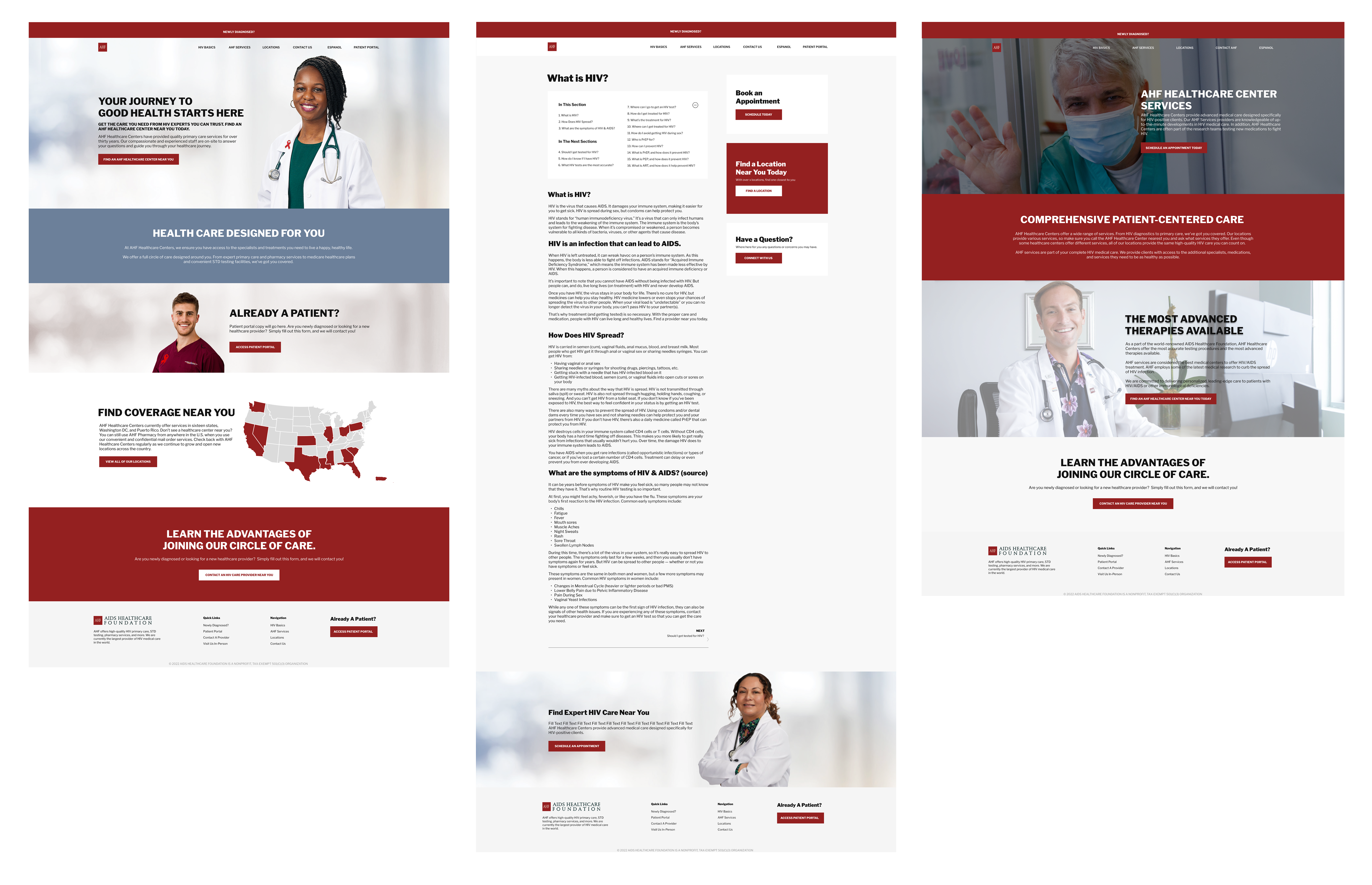 To address usability, I made several changes in the new design including adding the patient portal to the navigation system, repositioning CTAs for newly diagnosed patients, and featuring important links in the footer including internal and external links to critical resources. In addition, we completely restructured the resources pages that held a lot of information ranging from symptoms, how to get tested, treatment options, and more into a table of contents organization to increase readability.