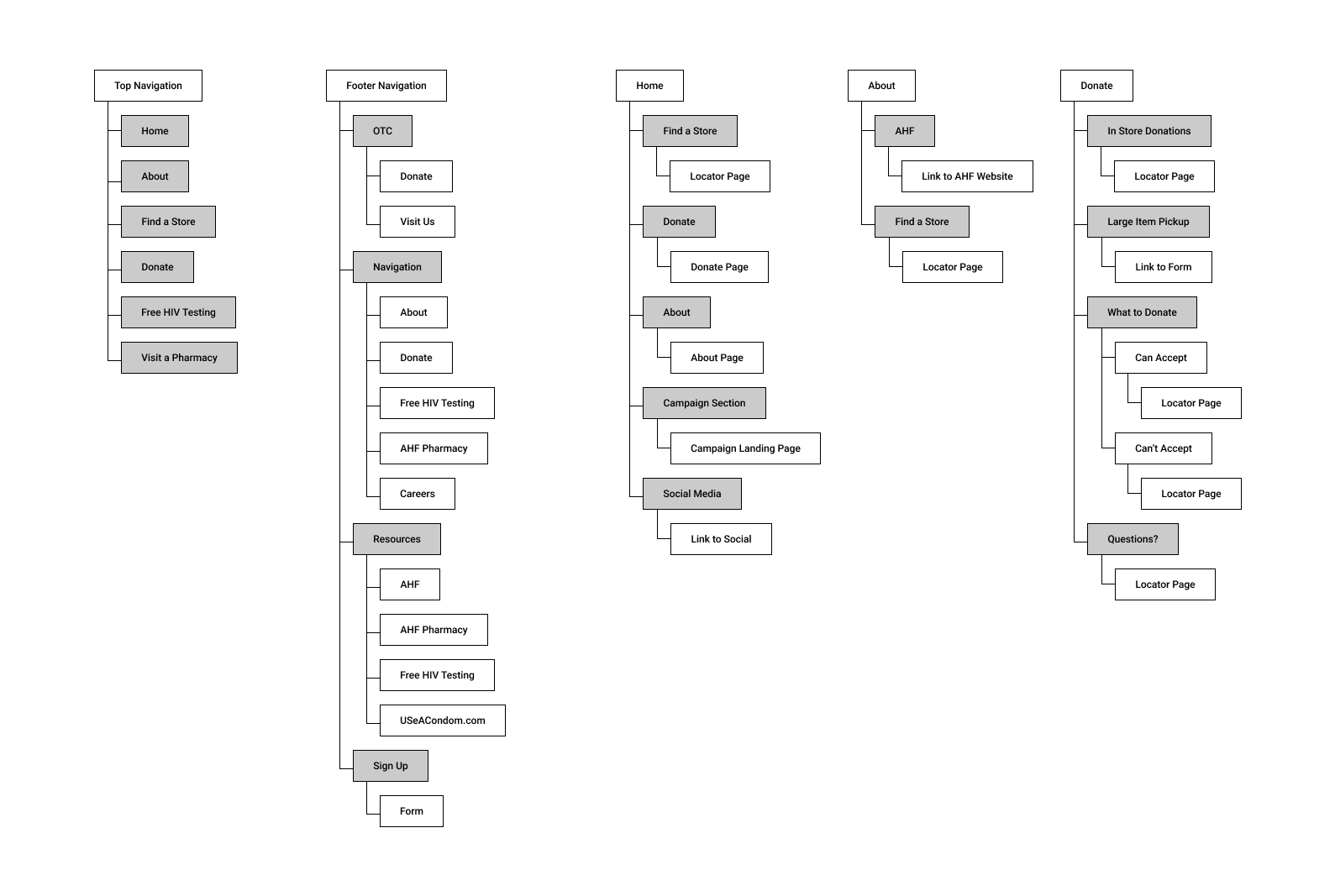 The website failed page load speed tests, causing users to wait prolonged periods of time for the website to load. Additionally, the navigation was confusing and didn't streamline specific tasks for users, and the overall design needed a lift to align with recent creative designs. This project required continuous collaboration between product, creative design, branding, and other key stakeholders from the thrift store line, along with research on the competitive landscape and the organization's users.